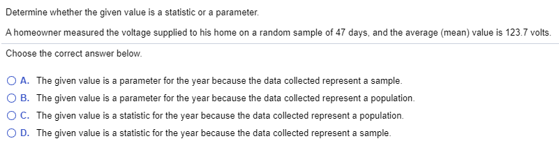 Solved Determine Whether The Given Value Is A Statistic Or A Chegg Com
